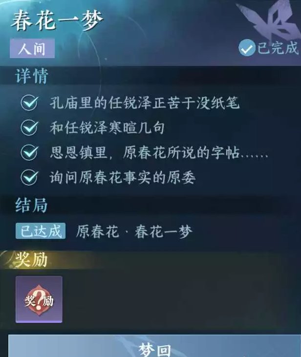 《逆水寒手游》春花一梦怎么做 人间任务春花一梦任务攻略