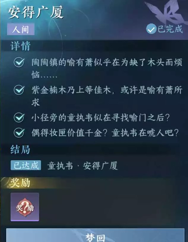 《逆水寒手游》安得广厦怎么做 人间任务安得广厦任务攻略