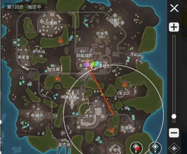 位于中转站右上方、物流库下方、发电组上方以及淹没区上方位置。