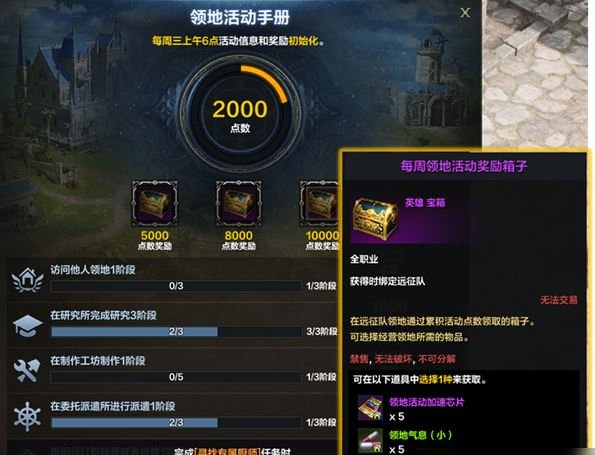 而且每周领地任务达标的话,也会送你几个宝箱,能开出来活动力药剂。