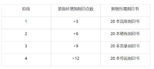 玩家通过刻印书、首饰套装铭刻效果和能力石铭刻效果这三种合计得到的刻印点数,来激活对应等级的刻印效果,不同级别的首饰、能力石所携带的点数有所不同。