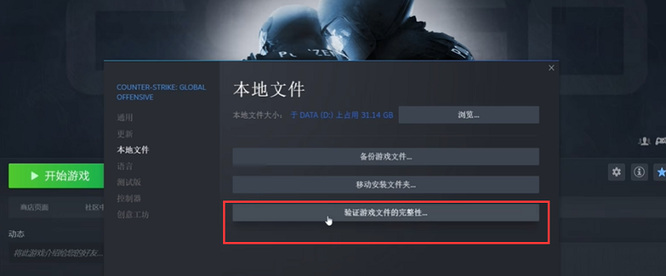 2.在“本地文件”中点击”验证游戏文件完整性“。验证完成后在重新连接或者重启steam即可。