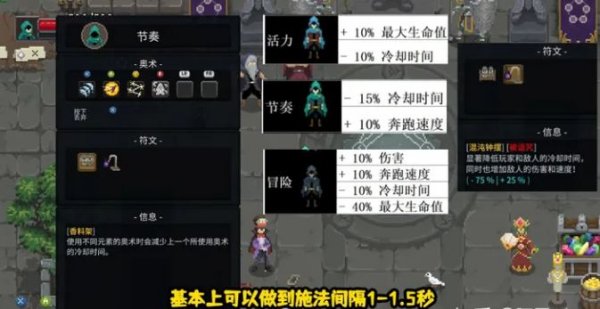 无限流还有一个低配的版本,就是出门斗篷选“节奏”,符文选择“香料架”,最多可以减40%的CD时间,这样在开局选择奥术时只能选择不同的元素并且施法硬直时间加起来相近的奥术,这里建议的是“电击突袭”跟“撕裂旋风”,但也无法做到不间断施法,也是会有2秒左右的CD时间,所以在通关路上需要继续选择减CD的符文,