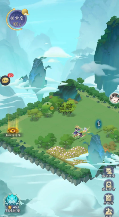 1、通关办法:一直走树多的传送口,如果分不清树多少,那就一直走“震”传送口,两种办法皆可。走完一遍就可以100%探索了。