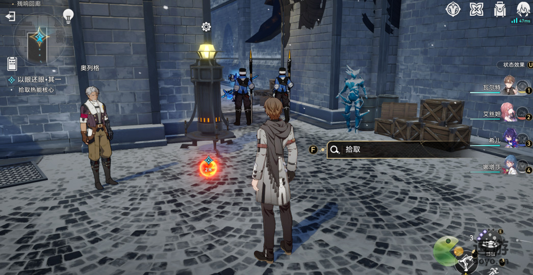 5、击败上述3个怪物后打开前方大门,前方的红球在怪物的巡猎路线附近,注意等他们背对远离红球时冲过去捡上红球回头启动灯炉