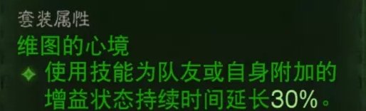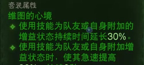 最后值得一提的是第4个技能的选择,这里建议是带大地践踏的无畏心性精华,吃维图+增益时间并且定期打范围伤害,等于多一个BUFF技能。这套BD的好处在于带维图2+增益时间持续可以给3个技能增幅,BUFF全开非常爽!
