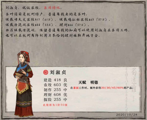 3、20%加成等于种茶时额外+300农牧,完爆贪官,可以说是杭州专属人物。