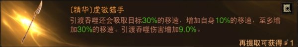 虔敬猎手已经成为了版本的过客,在狂骑士刚出的时候吸血,加速,伤害小幅度增加非常不错,是引渡吞噬必带的,在最初版本因为没有更好的BD选择,所以增加移动速度跑图也很好。