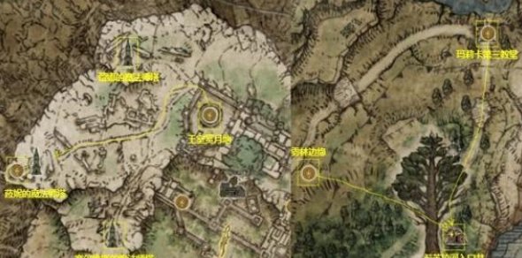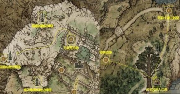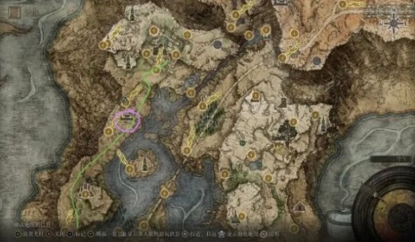 打完恶兆和葛瑞克出史东威城到达红圈(圆圈里面有地图请找一下)内的绿线开头的赐福,先点亮然后召唤灵马,按照绿线走绿线尽头!路上应该有个地图,还有一个水母盾记得找找。点亮绿线终点。那个蓝色的圈就是我们后期要去的月光祭盘