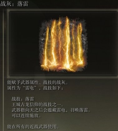 战灰属性:雷电 需要武器:所有近战武器