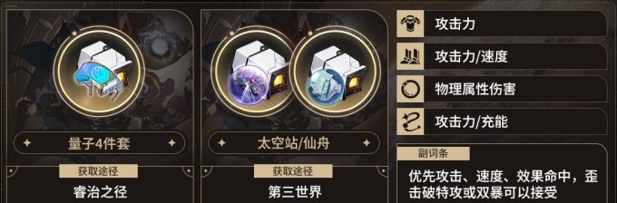 卢卡的两件套遗器需要从太空站与仙舟间选择,后文有相应介绍因此不再赘述。