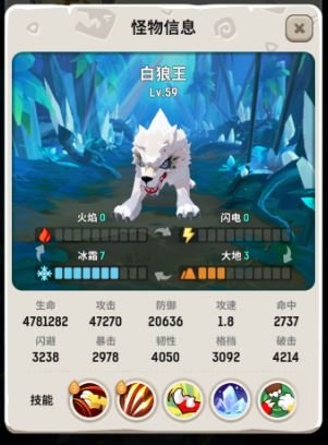 2. 狼王:自身受到的伤害降低65%,每只白座狼死亡后会受到最大生命值8%的伤害不同地图的白狼王数值不同