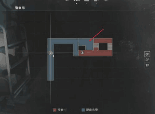 1.首先按剧情搜索警察局,来到三楼(箭头所指)的地方。