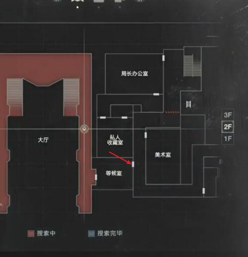 3.然后来到二楼东侧,进入等候室。前面需要的钥匙卡就在地图上的美术室里。