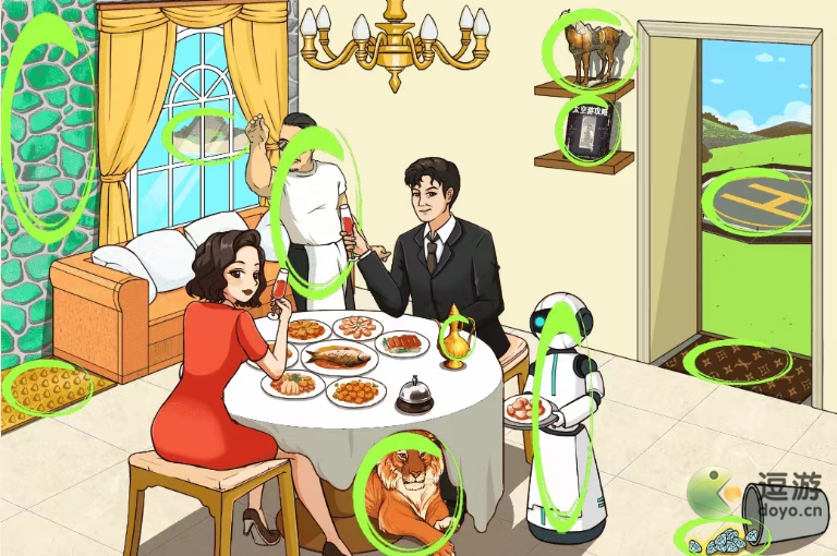 文字来找茬挥金如土是一个看图找茬关卡,图中大哥和大嫂在吃饭,还有机器人上菜,大家需要找出12个阔绰之处。以下是文字来找茬挥金如土通关攻略分享,来看看吧。