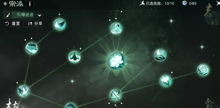 迷途伤害虽然高,大招伤害也不能放弃;如果迷途层数不够,建议放弃大招的怒气增伤节点,取消梦动千湖减少至9层的效果,点出大招增加迷途节点。